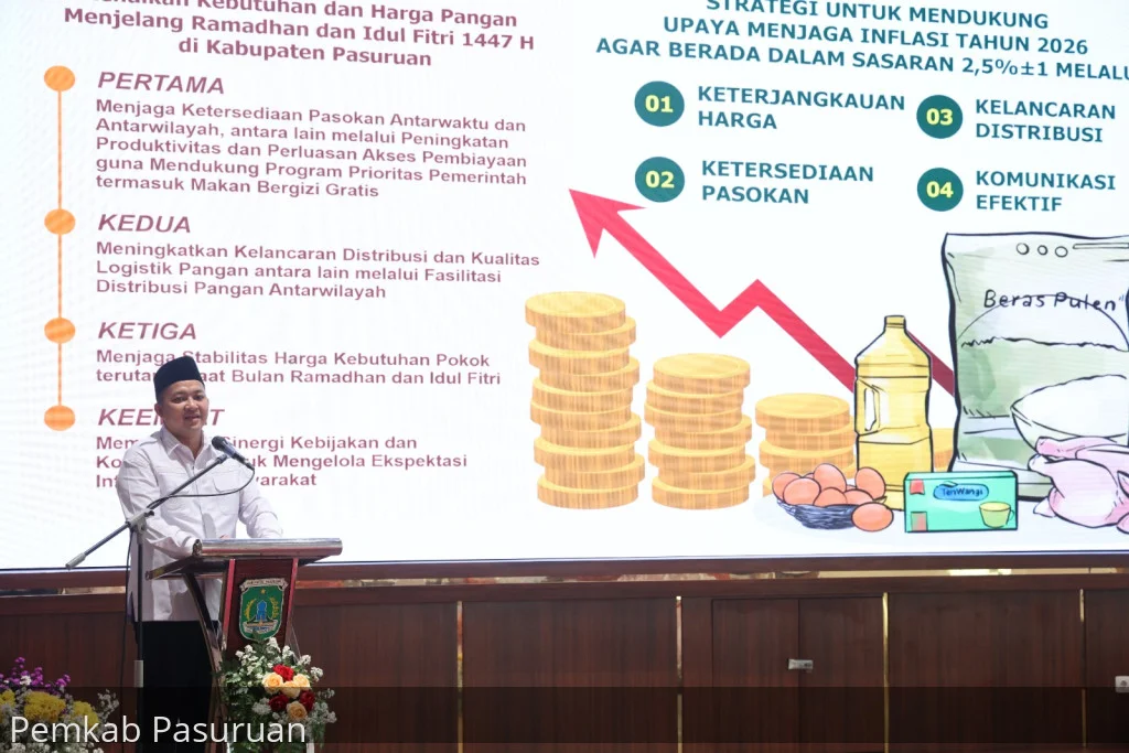 PASURUAN, 11 Februari 2026 – Mengantisipasi perubahan harga kebutuhan bahan pokok yang terjadi saat Bulan Ramadhan dan Hari Raya Idul Fitri 1447 Hijriyah, Pemerintah Kabupaten Pasuruan menggelar High Level Meeting Tim Pengendalian Inflasi Daerah (HLM TPID).