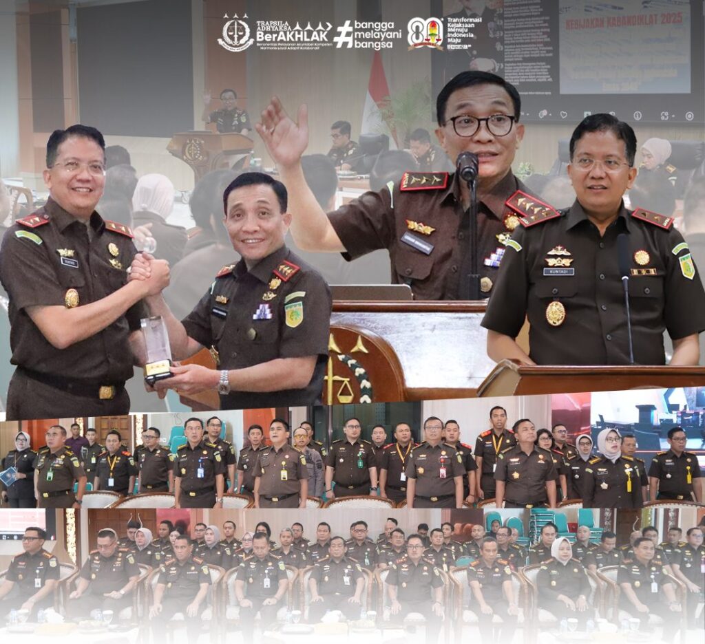 SURABAYA, Jumat 26 September 2025 – Kepala Kejaksaan Tinggi Jawa Timur, Dr. Kuntadi, S.H., M.H., menerima kunjungan Kepala Badan Pendidikan dan Pelatihan (Kabadiklat) Kejaksaan RI, Dr. Leonard Eben Ezer Simanjuntak, S.H., M.H., beserta jajaran, dalam rangka sosialisasi persiapan dan pembekalan Pelatihan Dasar (Latsar) Calon Pegawai Negeri Sipil (CPNS) Tahun 2025 di Aula Kejati Jatim, Kamis (25/9/2025).
