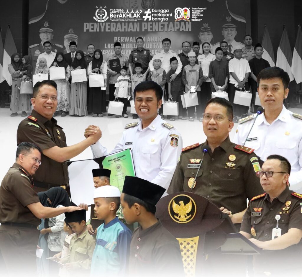 BLITAR, Kamis 18 September 2025 – Sebagai bentuk nyata komitmen Kejaksaan dalam mewujudkan perlindungan anak yang inklusif dan berkelanjutan, Kepala Kejaksaan Tinggi Jawa Timur, Dr. Kuntadi, S.H., M.H., secara simbolis menyerahkan Penetapan Perwalian Anak Lembaga Kesejahteraan Sosial Anak (LKSA) Sabilul Muhtadien kepada Wali Kota Blitar, Rabu (17/9/2025).
