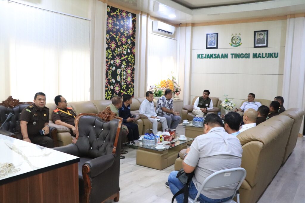 AMBON, Kamis 25 September 2025 – Kepala Kejaksaan Tinggi Maluku Agoes Soenanto Prasetyo, S.H.,M.H bersama jajarannya menerima kunjungan silaturahmi Direktur Penindakan Pidana Kehutanan pada Kementerian Lingkungan Hidup dan Kehutanan (KLHK) Republik Indonesia Rudianto Saragih Napitu, S.Si.,M.Si diruang rapat Kejaksaan Tinggi Maluku, pada hari ini Kamis (25/9/2025).