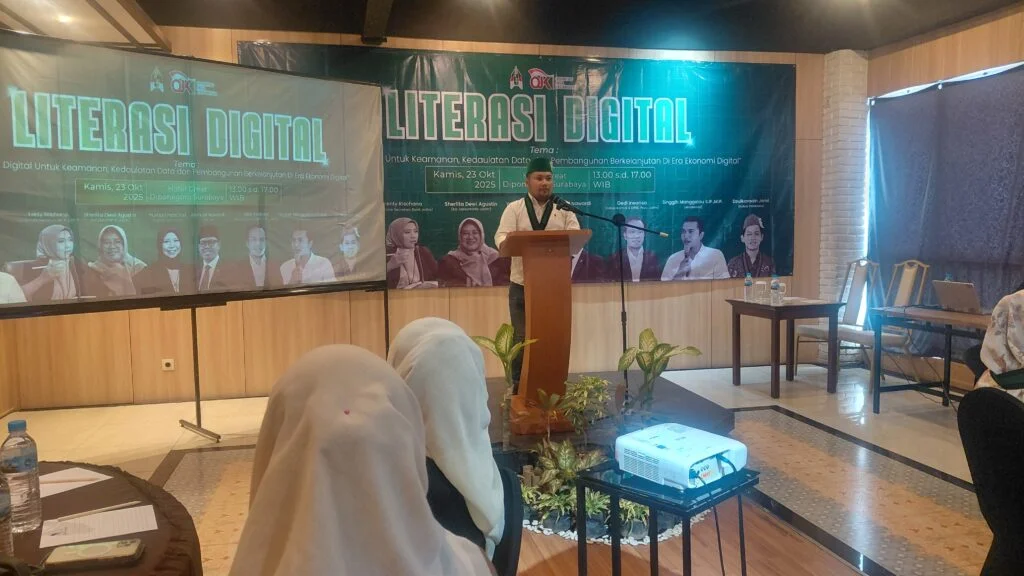 SURABAYA, 27 Oktober 2025 –Ketua Badan Koordinasi Himpunan Mahasiswa Islam (Badko HMI) Jawa Timur, Yusfan Firdaus, menegaskan pentingnya kesadaran dan penguasaan dunia digital bagi kader HMI di tengah pesatnya kemajuan teknologi. Hal tersebut disampaikannya saat membuka kegiatan literasi digital bertajuk “Literasi Digital untuk Keamanan Data dan Pembangunan Berkelanjutan di Era Ekonomi Digital”, Kamis (23/10/2025) di Surabaya.