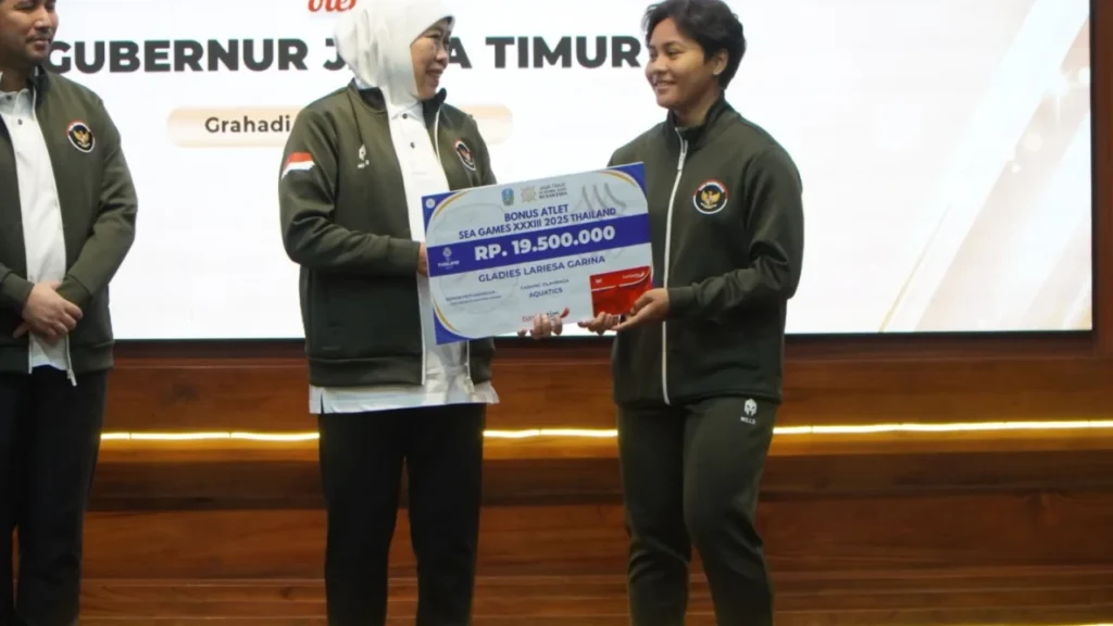 SURABAYA, 30 JANUARI 2026 – Pemerintah Provinsi Jawa Timur memberikan bonus kepada atlet dan pelatih loncat indah asal Jatim yang berkontribusi menyumbangkan medali bagi Indonesia pada ajang SEA Games 2025 Thailand.