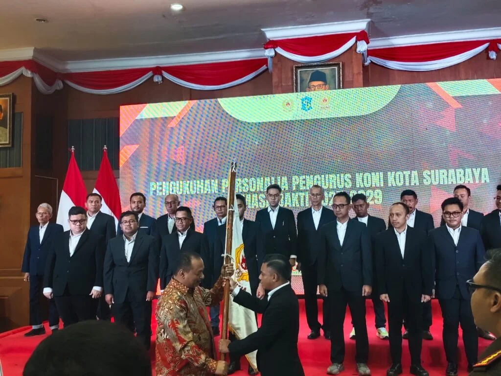 Surabaya, Rabu 03 Desember 2025 – Sebanyak 132 pengurus Komite Olahraga Nasional Indonesia (KONI) Kota Surabaya periode 2025-2029 resmi dilantik di Gedung Sawunggaling, Jalan Jimerto, Surabaya, pada Rabu (03/12/2025).