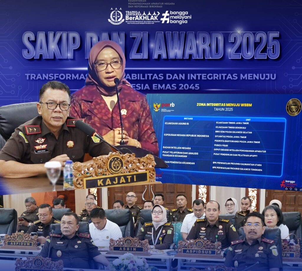 Penghargaan prestisius ini diumumkan dalam forum SAKIP dan Zona Integritas (ZI) Award 2025 yang digelar di Jakarta dan diikuti secara daring dari oleh Kepala Kejaksaan Tinggi Jawa Timur Agus Sahat ST, S.H., M.H., bersama Wakajati, jajaran Asisten, Koordinator, Tim Pembangunan ZI-WBBM, dan para pegawai.