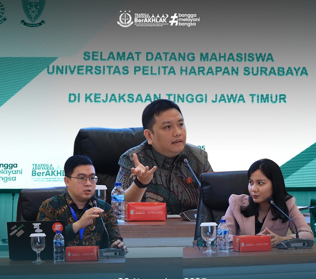 SURABAYA, Jumat 28 November 2025 – Kejaksaan Tinggi Jawa Timur menerima kunjungan lapangan (site visit) mahasiswa Program Studi Hukum Universitas Pelita Harapan (UPH) Surabaya yang berlangsung di Aula Sasana Adhyaksa, Jumat (28/11/2025). Sebanyak 40 mahasiswa hadir dalam kegiatan ini dengan didampingi oleh dua dosen pengajar. Kegiatan ini bertujuan untuk memperoleh wawasan praktis dan pemahaman langsung mengenai sistem […]