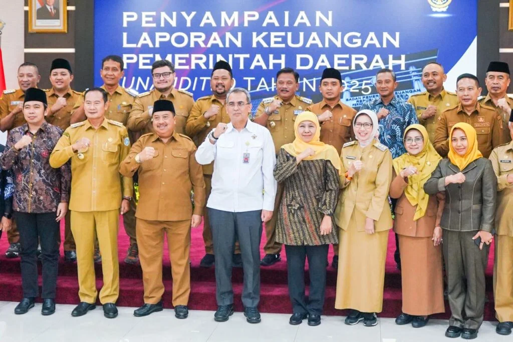 Khofifah dan 36 Daerah Serahkan LKPD 2025 ke BPK Jatim, Targetkan Seluruhnya Raih Opini WTP