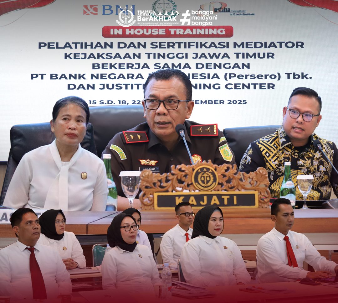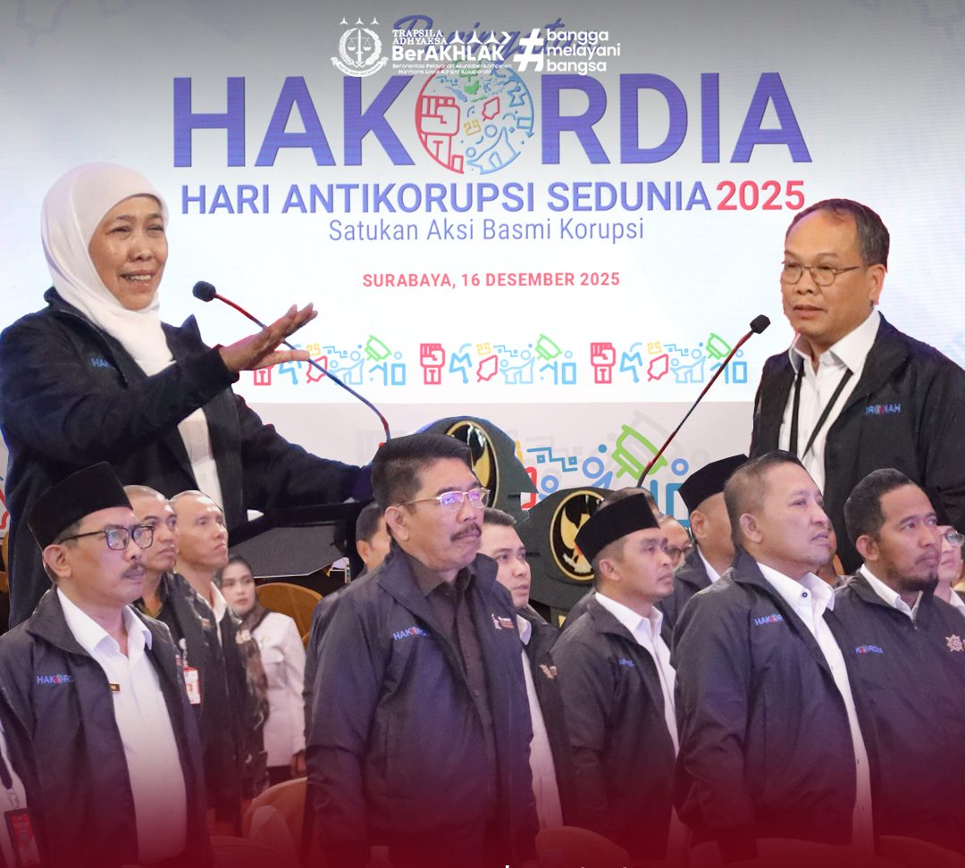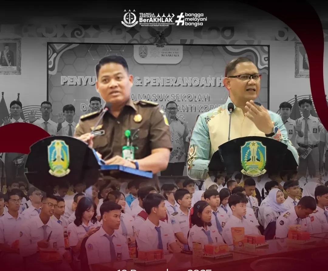 SURABAYA, Rabu 17 Desember 2025 – Kejaksaan Tinggi Jawa Timur melalui Seksi Penerangan Hukum menggelar penerangan dan penyuluhan hukum “Jaksa Masuk Sekolah” dalam rangka Peringatan Hari Antikorupsi Sedunia (Hakordia) Tahun 2025 di Aula Dinas Pendidikan Provinsi Jawa Timur, Selasa (16/12/2025). Kegiatan ini dihadiri Kepala Dinas Pendidikan Provinsi Jawa Timur Dr. Aries Agung Paewai, jajaran pejabat utama Dinas […]