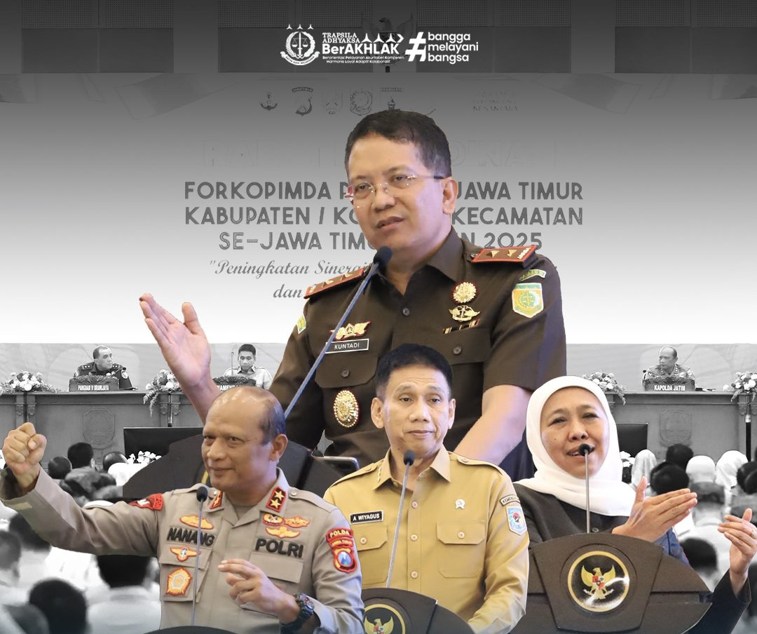 SURABAYA, Jumat 07 November 2025 – Kejaksaan Tinggi Jawa Timur menggelar kegiatan senam bersama yang berlangsung di halaman kantor Kejati Jatim pada Jumat (7/11/2025). Kegiatan ini diikuti oleh Kepala Kejaksaan Tinggi Jawa Timur, Dr. Kuntadi, S.H., M.H., Wakajati, para Asisten, Koordinator, serta seluruh pegawai di lingkungan Kejati Jatim. Kegiatan senam bersama berlangsung selama satu jam dan dipandu […]
