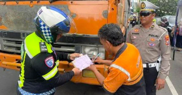 Dalam Operasi Ketupat Semeru 2026, Satlantas Polresta Sidoarjo Lakukan Penindakan Teguran Tertulis Pembatasan Angkutan Barang